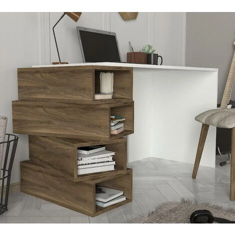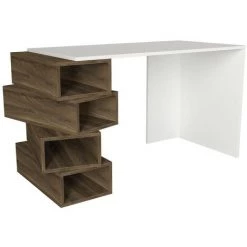 Offrez-vous un bureau qui vous ressemble et améliorez votre créativité. Nous vous proposons ce magnifique bureau Elmer pour installer votre ordinateur. Pour vos différents rangements, ce bureau comporte quatre étagères pour pouvoir y ranger vos livres et affaires. Craquez vite pour ce joli meuble, au design contemporain qui apportera une touche de modernité à votre salle d étude, votre chambre ou votre salon! Matériau : Mélaminé Dimension : 130 x 60 x 75 cm (L x P x H) Couleur : Bois et Blanc