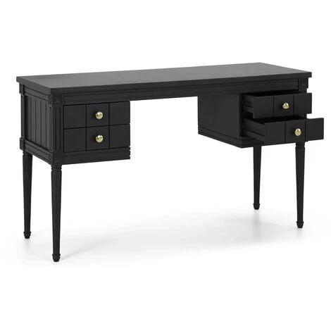 Le bureau Rivoli est muni de quatre tiroirs de rangement dont les faces avant sont joliment rainurées, et pourvues de boutons en métal doré.