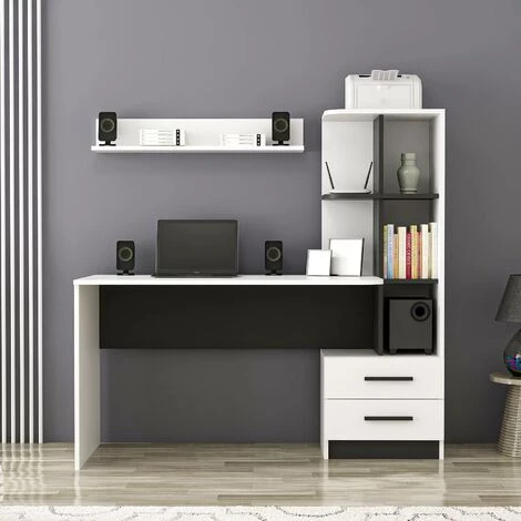 Silja est un bureau bibliothèque très fonctionnel avec une grande étagère sur le dessus. Fabriqué en panneaux de particules, il sera suffisamment solide pour accueillir des livres, un ordinateur et bien plus encore. Très fonctionnel et facilement combinable. Ce bureau est très pratique grâce à ses étagères. Il vous permettra de travailler dans un environnement ordonné et structuré qui vous permettra de développer pleinement votre apprentissage. Matériau : Mélaminé Dimension : Bureau : 120 x 60 x 74 cm (L x P x H) Bibliothèque : 48 x 35 x 142 cm (L x P x H) Etagère : 90 x 16 x 15 cm (L x P x H) Compartiment de la bibliothèque : 2 tiroirs 3 étagères