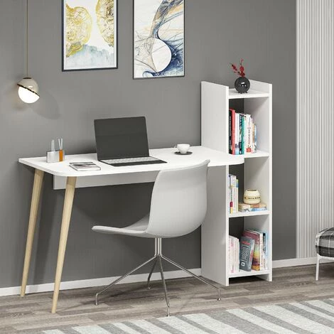 On a tous besoin d un espace de travail pratique et agréable. Pour cela, un bureau est absolument nécessaire : notre bureau rétro-scandinave ultra-pratique avec étagères va vous épater ! Fabriqué en bois mélaminé de haute qualité, il associe de manière élégante un look tendance à la fonctionnalité. Le bureau dispose de plusieurs étagères pour vous permettre de vous organiser tout en ajoutant une touche de style scandinave à votre intérieur. Vous allez craquer !