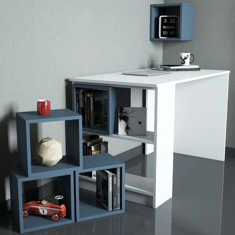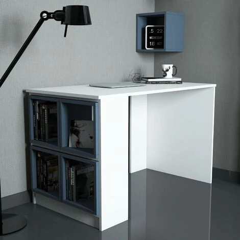 Ordonnez votre maison avec le magnifique ensemble bureau et 5 niches Officila Blanc et Bleu. Cet ensemble de 6 pièces vous permet de ranger vos affaires tout en sublimant votre espace. Profitez de ces pièces de rangement pour soulager votre intérieur et apportez un nouveau souffle dans votre logis.