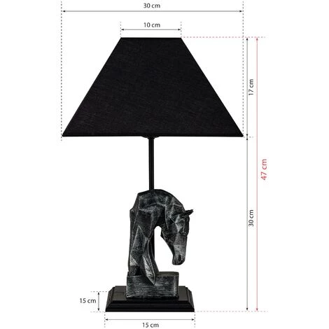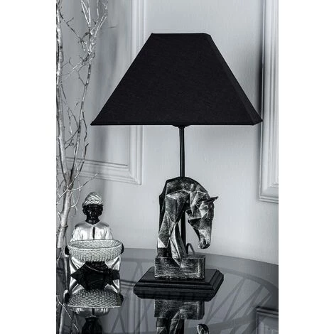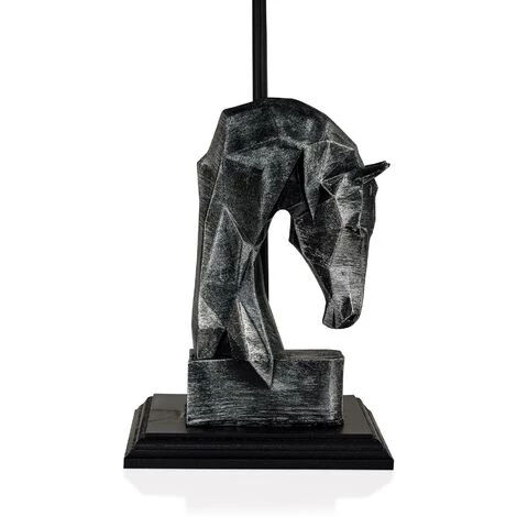 Il s agit d une lampe de table attrayante avec un pied de lampe original en forme de tête de cheval. La lampe à poser Replico, en métal argenté et tissu noir mat, présente un design surprenant et indéniablement élégant et une simplicité fascinante. Fabriquée à partir de matériaux durables, elle constitue un atout décoratif original et en même temps discrètement élégant comme éclairage d ambiance ou de surface.