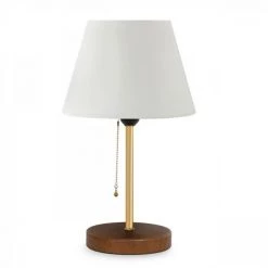 Éclairez votre espace d un style élégant, simple et contemporain grâce à cette lampe de table Virasta. Fabriquée en bois et métal avec une finition dorée, le corps de cette lampe arbore une silhouette tubulaire et un pied-socle rond large en bois. L abat-jour en tissu blanc crème épuré diffuse une lumière douce et chaleureuse pour créer une jolie ambiance tamisée. Matériaux : Bois, Métal et Tissu Dimension : Totale : 22 x 40 cm (D x H) Abat-jour : 22 x 14 cm (D x H) Couleur : Bois, Or et Blanc crème