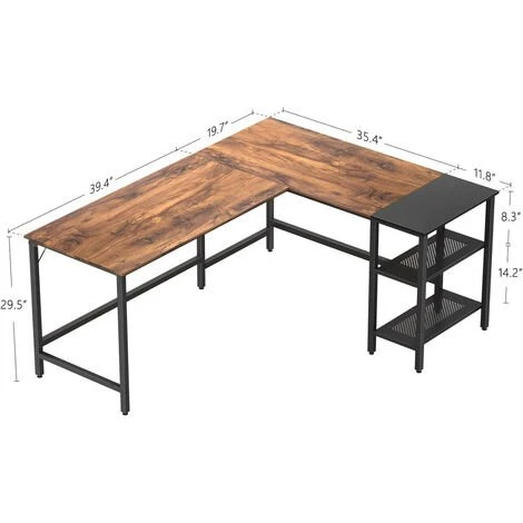 CubiCubi bureau d’ordinateur en forme de L est conçu pour de multiples usages. C’est un bureau d’ordinateur indispensable qui s’intègre bien dans votre bureau à domicile, votre salle d’étude, votre chambre et votre salon.
