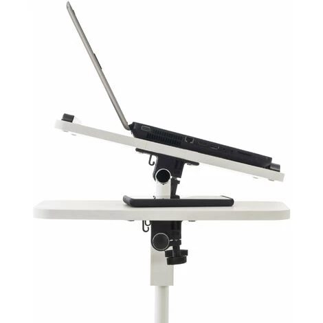 La table d’appoint dispose de 2 surfaces de travail inclinables et rotatives qui offrent de la place pour votre ordinateur portable et en option votre souris, vos notes ou une boisson. Grâce aux 4 roulettes qui peuvent ĂŞtre freinĂ©es, il est Ă la fois mobile et stable.