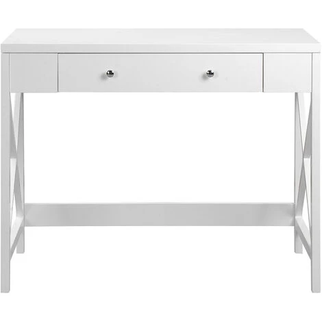 Bureau de style simple et élégant: Les pieds de table de style blanc pur sont en bois de pin, ce qui rend le bureau très stable et fiable. Le design X-face est très spécial et à la mode