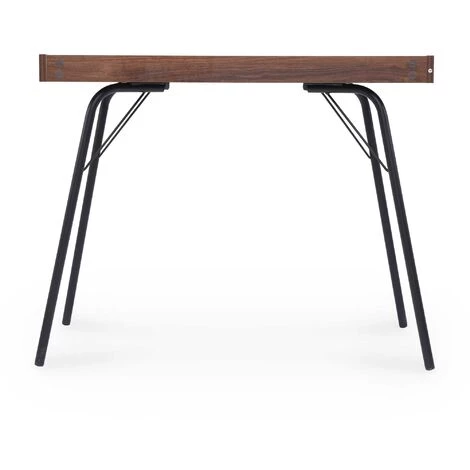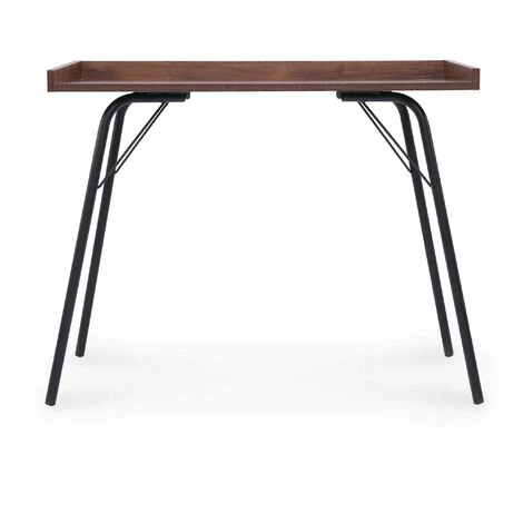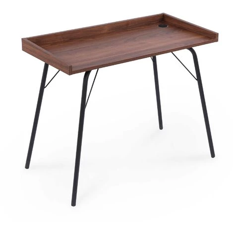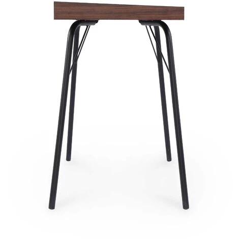 Le bureau LORIAN est un meuble stylé aux finitions travaillées et chics. Composé d’un plateau en bois MDF couleur noyer et de pieds évasés en métal noir, il joue sur l’efficacité du mélange de ses deux matières et sur ses formes légères.