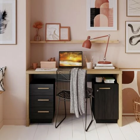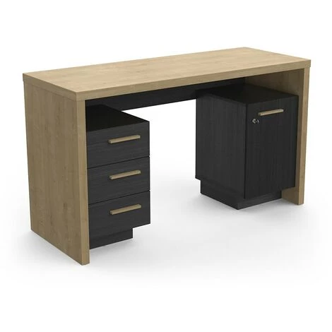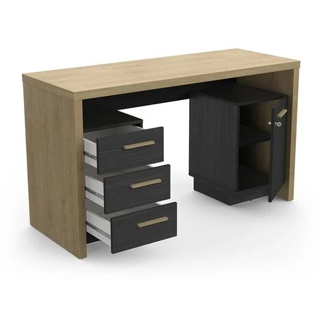 DEMEYERE Bureau 1 Porte 3 Tiroirs Naturel Et Noir Oxford – Naturel – Noir Et Naturel