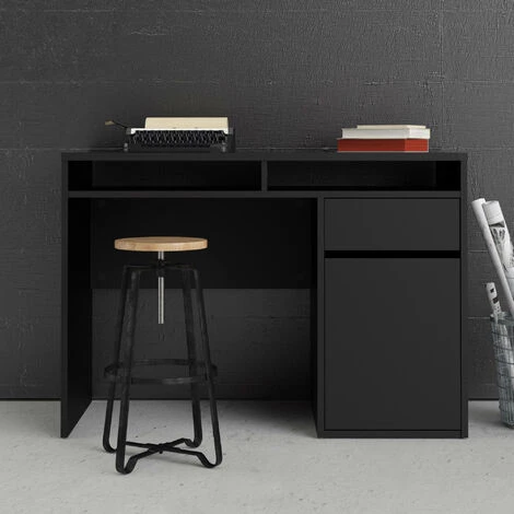 Bureau linéaire avec une porte et un tiroir, couleur noire, 110,2 x 77,4 x 48,2 cm.