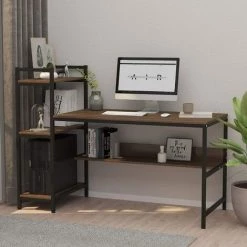 - 【Matériaux de Haute Qualité】 Dripex Bureau informatique avec rangement a un cadre en métal, stable et durable. Les panneaux de fibres de densité moyenne de classe E1, résistant à l’abrasion et imperméable.