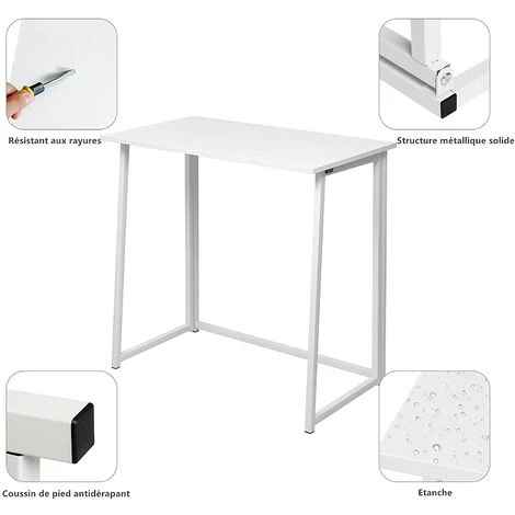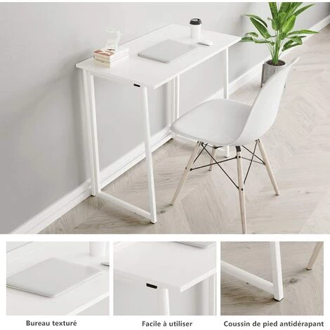 Dripex Table De Bureau Pliante Bureau Informatique Pliable Petit Table D’Ordinateur Pour Bureau Domicile 80 X 45 X 74 Cm – Blanc