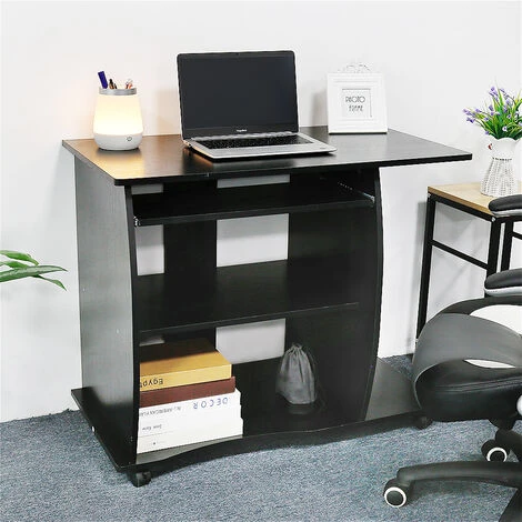DYHF Bureau Ordinateur Bureau Bureau Table & Rouleaux Table PC Avec étagères 90x75x50cm Noir – Noir