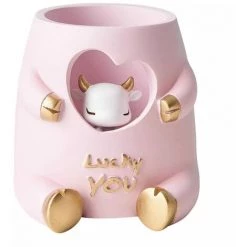 ENLENK Vache Porte-crayon Résine étui à Stylo Rose En Forme D’animal Conteneur De Stockage Pinceaux De Maquillage Porte-école Bureau à Domicile Accessoire De Bureau (Lucky You)