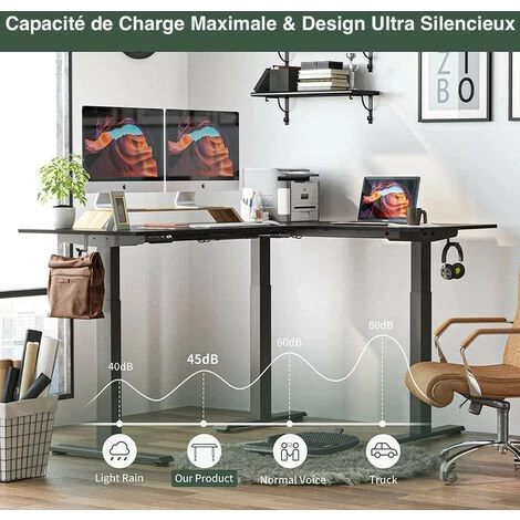 - 【Technologie Anti-collision】- La technologie anti-collision intégré permet protéger la table des chocs et des rayures, réglez le capteur intégré sur un nombre plus élevé pour détecter un objet solide lorsque la colonne de levage monte ou descend. Lorsqu’un obstacle est détecté, le bureau s’arrête automatiquement puis se déplace légèrement dans la direction opposée.