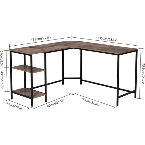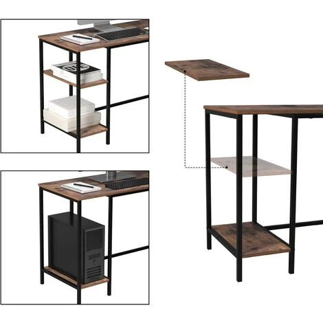 Espace spacieux: Le grand plateau de table (135x50cm + 80x50cm) offre suffisamment d’espace pour un écran, un ordinateur portable, des documents, une imprimante, des boîtiers de haut-parleurs, etc.