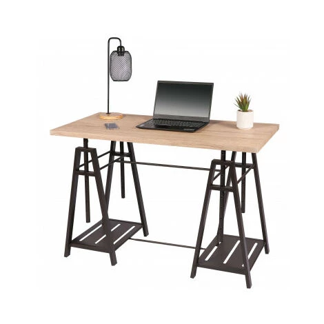 Dimensions: Longueur 120cm x largeur 59cm x Hauteur 75cmCouleur: Bois et NoirMatière: Bois creux recouvert d’une feuille de PVC imitation chêne et Métal