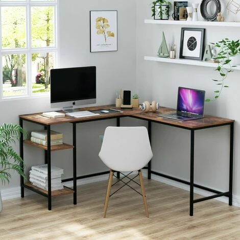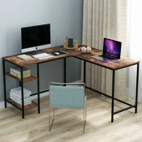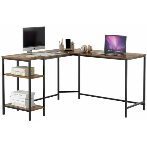 Rangement: Le bureau ergonomique a deux étagères pour bien ranger les dossiers et autres appareils et trous de fil