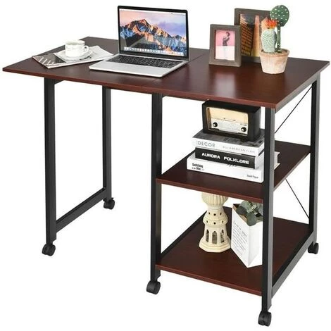 - [Spacieau plateau et étagères ouvertes] Le plateau spacieux (lorsque la table est dépliée) offre suffisamment d’espace pour accueillir un ordinateur portable, une horloge, des tasses et d’autres objets. En plus, le bureau est doté de 2 étagères de rangement ouvertes, qui permettent de stocker et d’organiser vos livres, dossiers et autres fournitures sans encombrer le plateau.