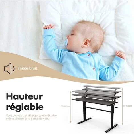- Bureau à hauteur réglable de 88 à 125 cm pour une utilisation en position assise et debout