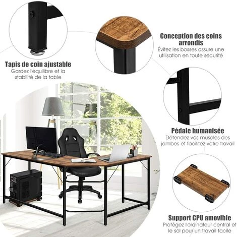 Êtes-vous toujours troublé par le travail ou l’environnement d’apprentissage? Notre conception unique de la forme en L non seulement économise de l’espace au sol, mais étend également considérablement la zone de travail. Support CPU amovible pour un espace libre, un matériau imperméable à la poussière et de haute qualité pour un nettoyage et une maintenance faciles. Venez l’acheter et rendez votre environnement de travail plus facile!