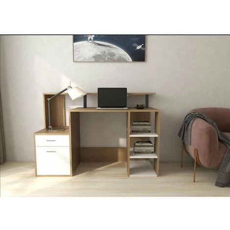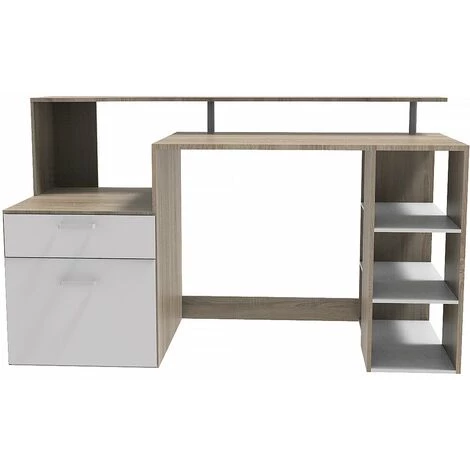 Bureau « Lune » – 140 x 55 x 93 cm – Panneau de particules – Chêne/BlancBureau « Lune »
