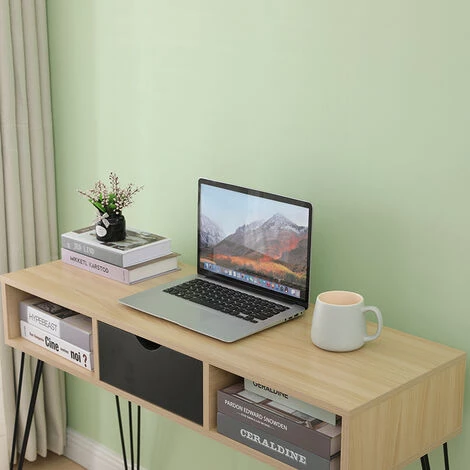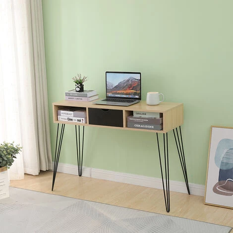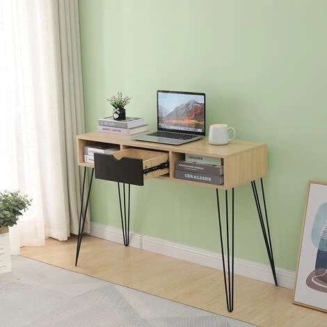 HALOYO Console Tiroir Console Meuble Vintage Bureau Industriel Avec Tiroir Et Rangements Pied épingle 100*35*75cm Couleur Du Bois