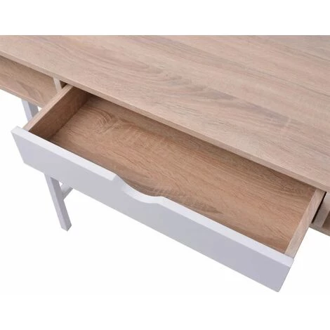 Ce meuble remarquablement fonctionnel animera n’importe quel environnement de maison ou de bureau. Doté d’un dessus en MDF de haute qualité et de pieds en métal massif, ce bureau est très durable, stable et robuste. Le dessus de table spacieux offre suffisamment d’espace pour ranger votre ordinateur, ordinateur portable, lampe de table, etc. Les deux compartiments, un de chaque côté, ainsi que le tiroir central, sont parfaits pour ranger et garder à portée de main toutes sortes d’objets plus petits comme des clés, des blocs-notes, des stylos et d’autres bibelots.