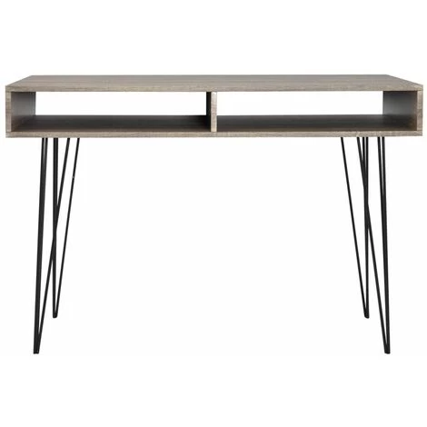 Ce meuble remarquablement fonctionnel animera n’importe quel environnement de maison ou de bureau. Doté d’un dessus en MDF de haute qualité et de pieds en métal massif, ce bureau est très durable, stable et robuste. Le dessus de table spacieux offre un grand espace pour ranger votre ordinateur, ordinateur portable, lampe de table, etc. Ses deux compartiments sont parfaits pour ranger et garder à portée de main toutes sortes d’objets plus petits tels que des clés, des blocs-notes, des stylos et d’autres bibelots.