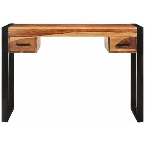 Ce magnifique bureau en bois de Sesham est à la fois élégant et pratique. Il deviendra un point de mire attractif de votre pièce. Ce bureau de style vintage en bois de Sesham solide apportera une touche intemporelle à votre maison. Le Sesham est un bois dur tropical connu pour ses grains riches et également connu sous le nom de bois de rose ou de palissandre. Chaque étape du processus est réalisée avec le plus grand soin, que ce soit le polissage, la peinture ou le laquage. Grâce au cadre en acier fort, le bureau est très stable et durable. Le plateau offre une surface stable et sécurisée sur laquelle vous pouvez placer vos boissons, un panier de fruits, un vase ou d’autres objets décoratifs. Il dispose de deux tiroirs offrant un grand espace pour ranger de petits objets tels que des clés et des blocs-notes. Le bureau peut être utilisé comme table d’ordinateur, table de travail, bureau, table de lecture, table d’étude, etc. Il peut également être utilisé comme buffet ou comme console. Remarque importante : Les couleurs varient d’un meuble à l’autre, rendant chacun de nos bureaux unique, la livraison est aléatoire.