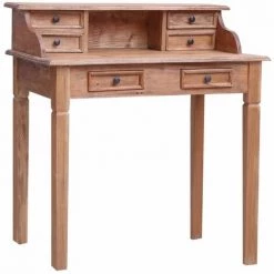 Ce bureau en bois dégage un charme rustique et sera un supplément élégant à n’importe quel décor. Le bureau est fait de bois de récupération solide provenant d’arbres tombés naturellement, de bois de bateaux, de maisons en bois, de troncs, etc. par conséquent, il a les caractéristiques de différents bois tels que le teck, l’acajou, le bois dur, etc. Vous pouvez trouver des clous, des vis, des boulons remplis, des cavités ainsi que d’autres imperfections soulignant sa valeur authentique. Ces imperfections partagent une histoire chaleureuse de son passé et ne sont jamais intentionnellement créées. De plus, le bureau a 6 tiroirs et 1 compartiment avec suffisamment d’espace pour garder vos articles importants organisés et à portée de main. Ce produit est facile à assembler.