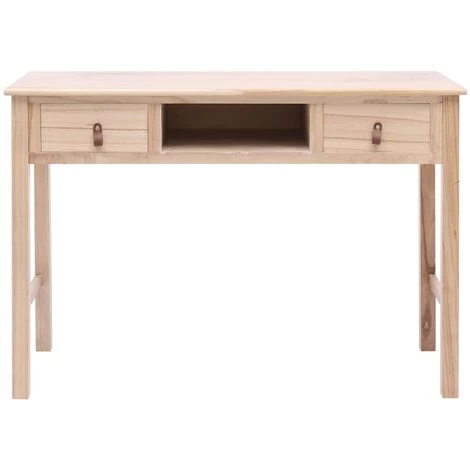 Notre bureau en bois classique dégage un charme vintage qui en fera un supplément distinctif à votre maison ou bureau. Il peut également être utilisé comme table console, table d’ordinateur, table d’appoint, etc. Fabriqué en bois de paulownia et de peuplier de qualité, ce bureau est robuste et durable. Il comprend 2 tiroirs et 1 compartiment ouvert au centre pour ranger, de manière simple et pratique, vos fichiers et autres articles essentiels de bureau à domicile. Le bureau est facile à assembler.
