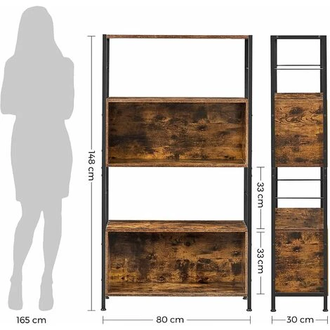 Présentation produit: Bibliothèque meuble de rangement ouvert fermé étagère salon bureau chambre pour livre décorations style industriel 148 cm marron rustique et noir