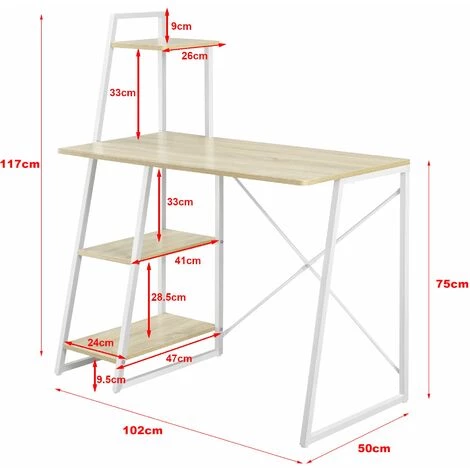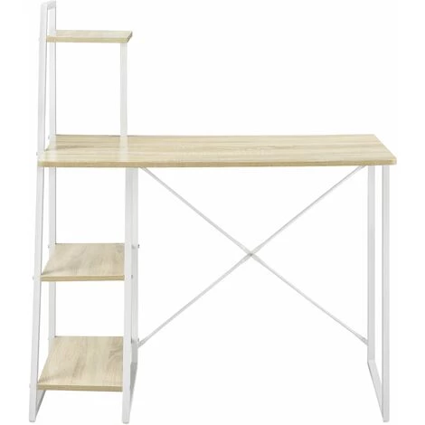 Présentation produit: Bureau avec étagères de rangement poste de travail table 117 cm chêne et blanc