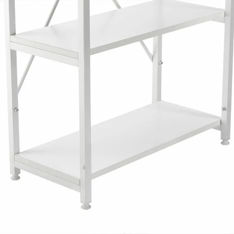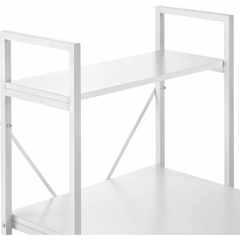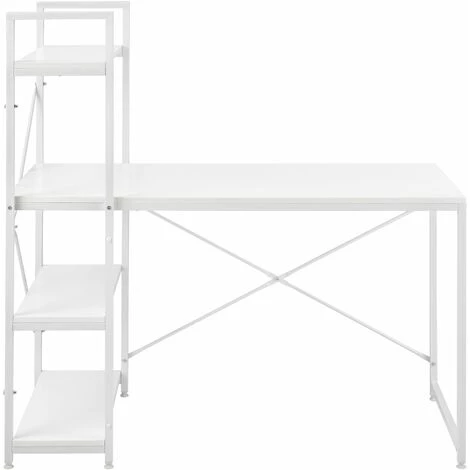 Présentation produit: Bureau avec étagères poste de travail table de bureau panneau de fibre de bois mélaminé et métal 122 x 120 x 64 cm blanc