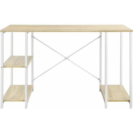 Présentation produit: Bureau avec étagères table poste de travail panneau de particules mélaminé et acier 75 x 120 x 60 cm chêne et blanc