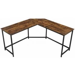 Présentation produit: Bureau d angle table en forme de L pour travailler et réviser bureau à domicile gain d espace montage facile style industriel 149 cm marron noir rustique