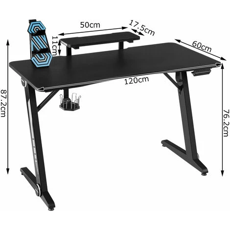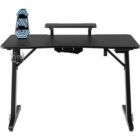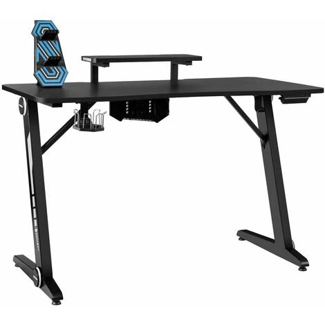 Présentation produit: Bureau gamer table de jeu pour gaming surface en fibre de carbone lumières rvb avec porte-gobelet crochet pour casque