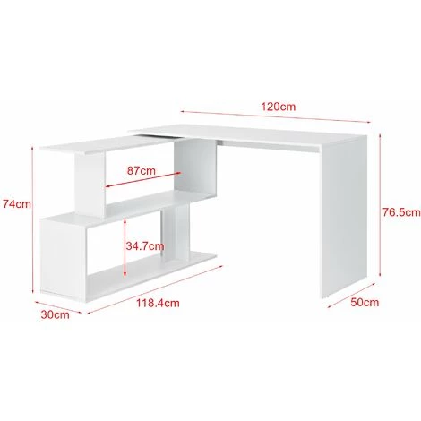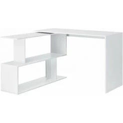 Présentation produit: Bureau gigogne design avec partie étagère bureau de coin extension panneau de particules mélaminé 77 x 120 x 50 cm blanc