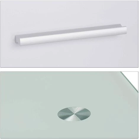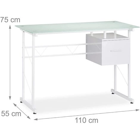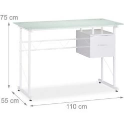 Présentation produit: Bureau moderne avec plaque de verre tiroir latéral pour chambre d’ado 110 cm blanc