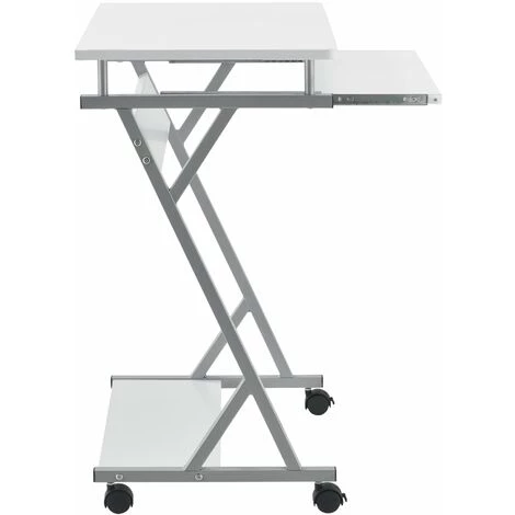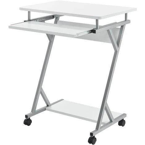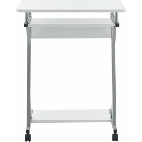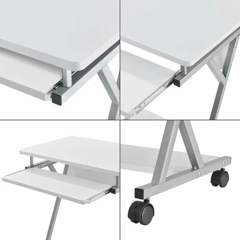 Présentation produit: Bureau ordinateur roulant table informatique avec support clavier coulissant avec 4 roulettes MDF 60 cm blanc