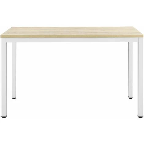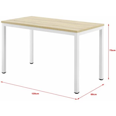 Présentation produit: Bureau réglable bureau d’ordinateur poste de travail table de bureau panneau de fibre de bois mélaminé et acier revêtu par poudre couleur chêne et blanc 75 x 120 x 60 cm