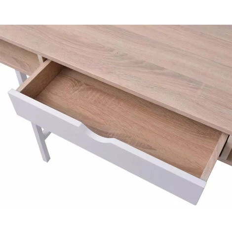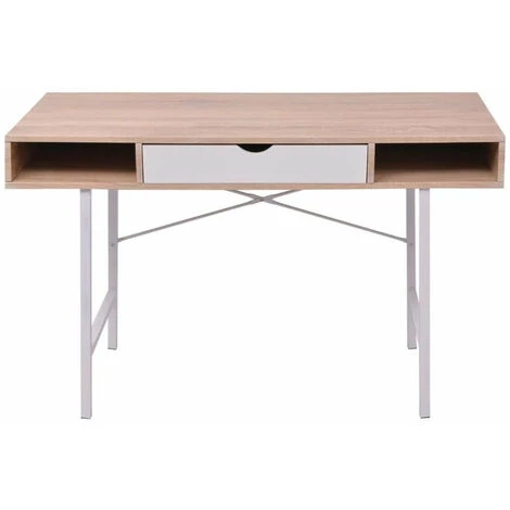 Présentation produit: Bureau table meuble travail informatique bureau avec 1 tiroir chêne et blanc