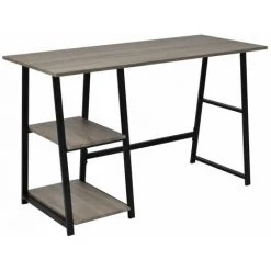 Présentation produit: Bureau table meuble travail informatiqueavec 2 étagères gris et chêne
