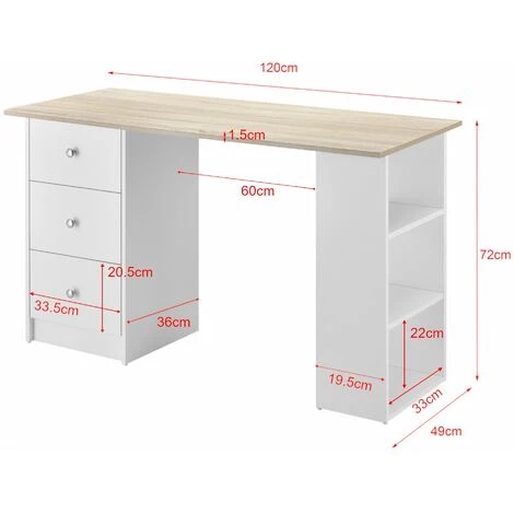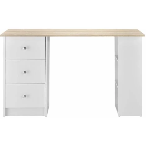 Présentation produit: Bureau table poste de travail informatique avec 3 tiroirs 120 cm blanc et bois