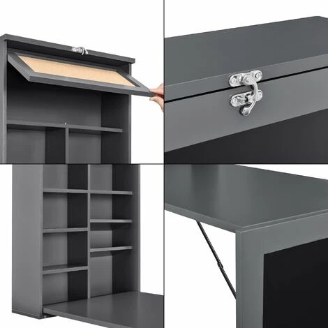 Présentation produit: Table murale pliable bureau mural rabattable MDF 156 cm gris