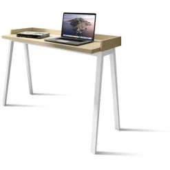 HERDASA Bureau, Modèle BERLIN, En Mélamine Et Pieds En Hêtre Massif. – Chêne Clair Blanc
