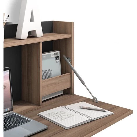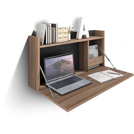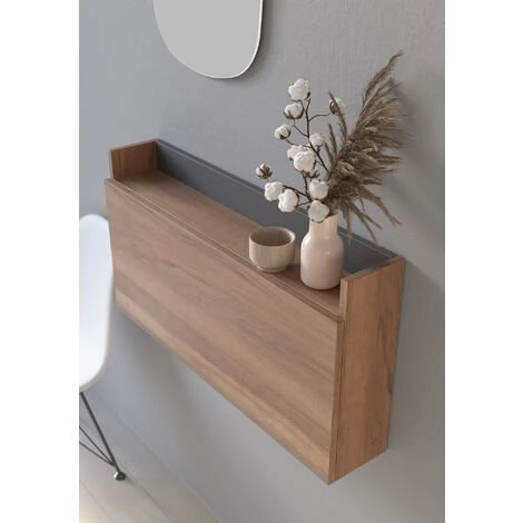 Bureau mural fabriqué en mélamine avec porte rabattable. La conception simple et fonctionnelle du bureau le font le choix idéal pour créer une zone étudiée ou un espace de travail confortable et sobre. Ce meuble est parfait pour les espaces réduits et peut être utilissé aussi comme console dans l’entrée ou meuble de rangement dans le salon ou la chambre.