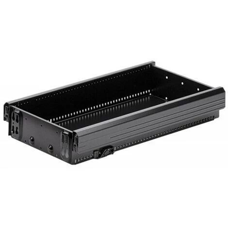 Description Pour caisson de largeur 400 mm.Prévoir :-1 tiroir,-4 vis de fixation de façade,-1 paire de coulisses KA 270 ou Quadro Duplex 45. Pièces de tension pour boîtier »Stop Control » prémontées.Dimensions : extérieures : L 370 x p 514 mm, intérieures : L 327 x p 490 mm.Hauteur mini. de façade : 128 mm.Acier époxy.