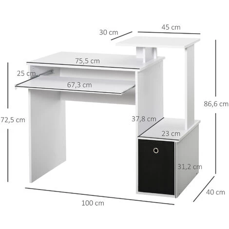 Le bureau informatique HOMCOM est très pratique en plus d’etre esthétique. Avec plusieurs étagères ouvertes, un clavier et un grand compartiment, il vous offre de multiples rangements pour ranger toutes vos fournitures.Son style moderne s’intégrera parfaitement dans n’importe quel style de décoration. Ce bureau est un excellent choix !
