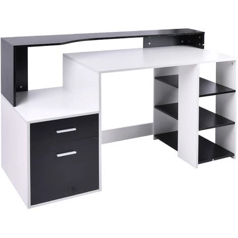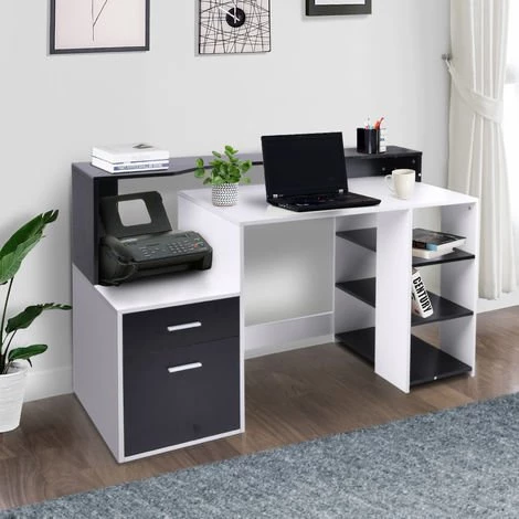 Ce bureau informatique multimédia de design contemporain coloris noir et blanc et multi-rangements saura vous râvir !